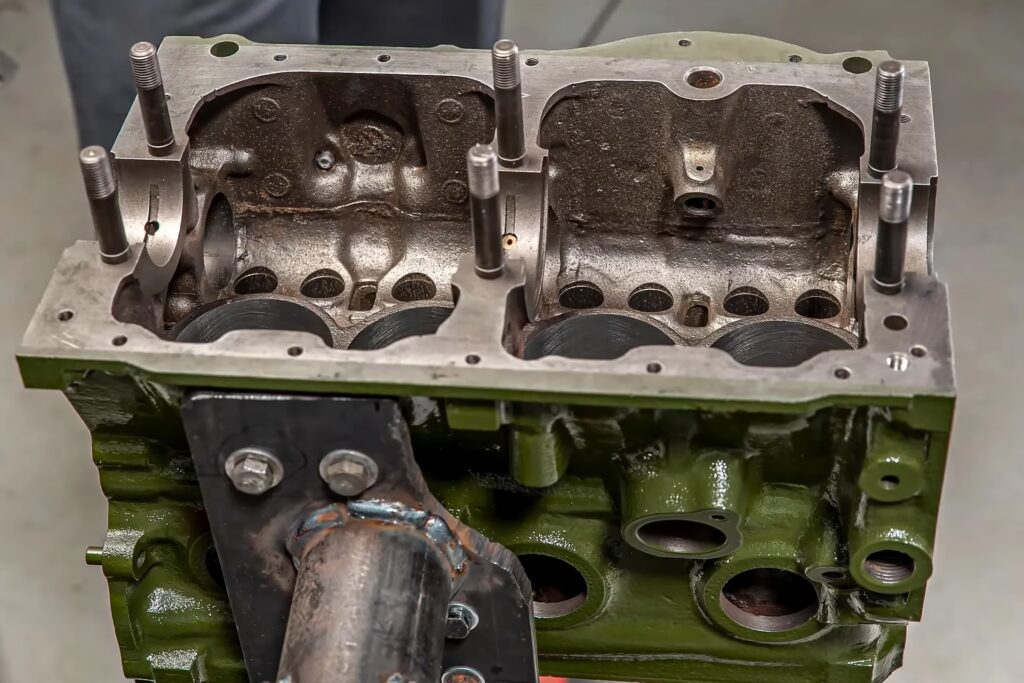 The "A Plus" engines featured a strengthened, ribbed cylinder block, a revised distributor mounting, and a transition from a duplex to a simplex timing chain.