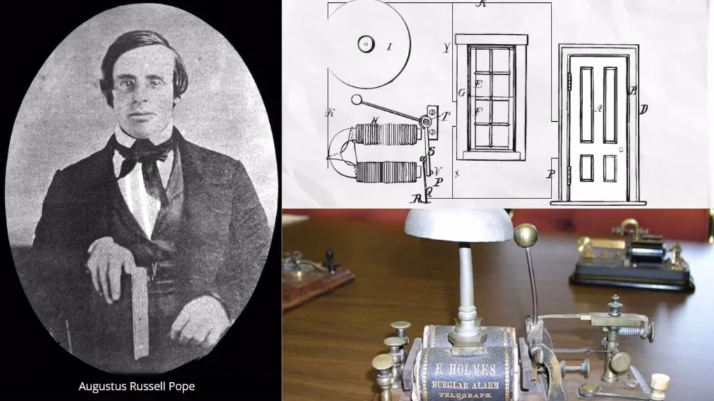 L’alarme a été brevetée en 1853 par le révérend Augustus Russell Pope (1819-1858) de Somerville, dans le Massachusetts.