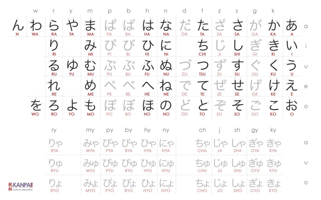 Complementing Kanji are two syllabic scripts, Hiragana and Katakana, each comprising 46 basic characters. Each character represents a specific sound, typically a consonant followed by a vowel (e.g., ka, ki, ku, ke, ko) or a standalone vowel (a, i, u, e, o). These scripts are essential for grammatical particles, verb and adjective inflections, native Japanese words not covered by Kanji, and loanwords.