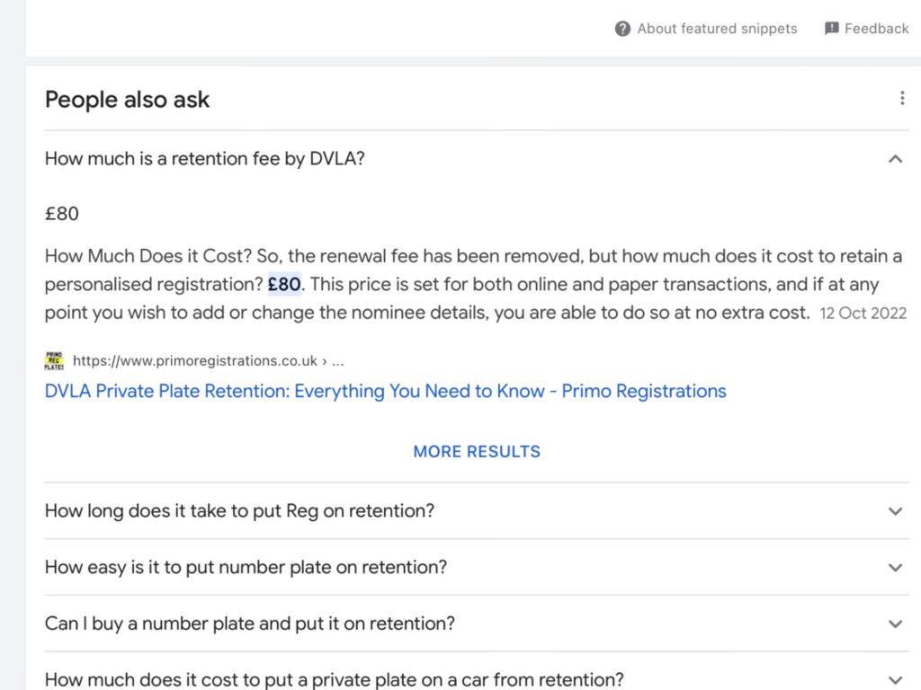 When you make your application to remove a private number plate from a vehicle and put it on retention, there is an assignment fee. Currently, this fee is £80.