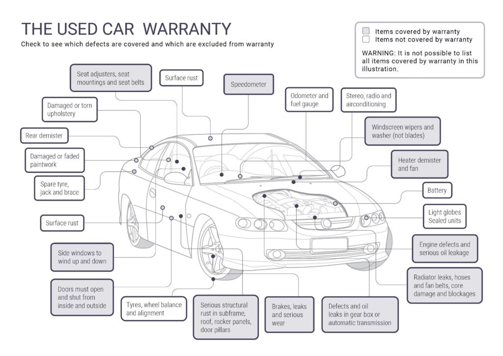 Crucially, items that make the vehicle unsafe to drive cannot be excluded from the dealer guarantee. This includes essential safety components such as tyres and brakes. If a dealer attempts to exclude these, it would likely be a breach of consumer law.