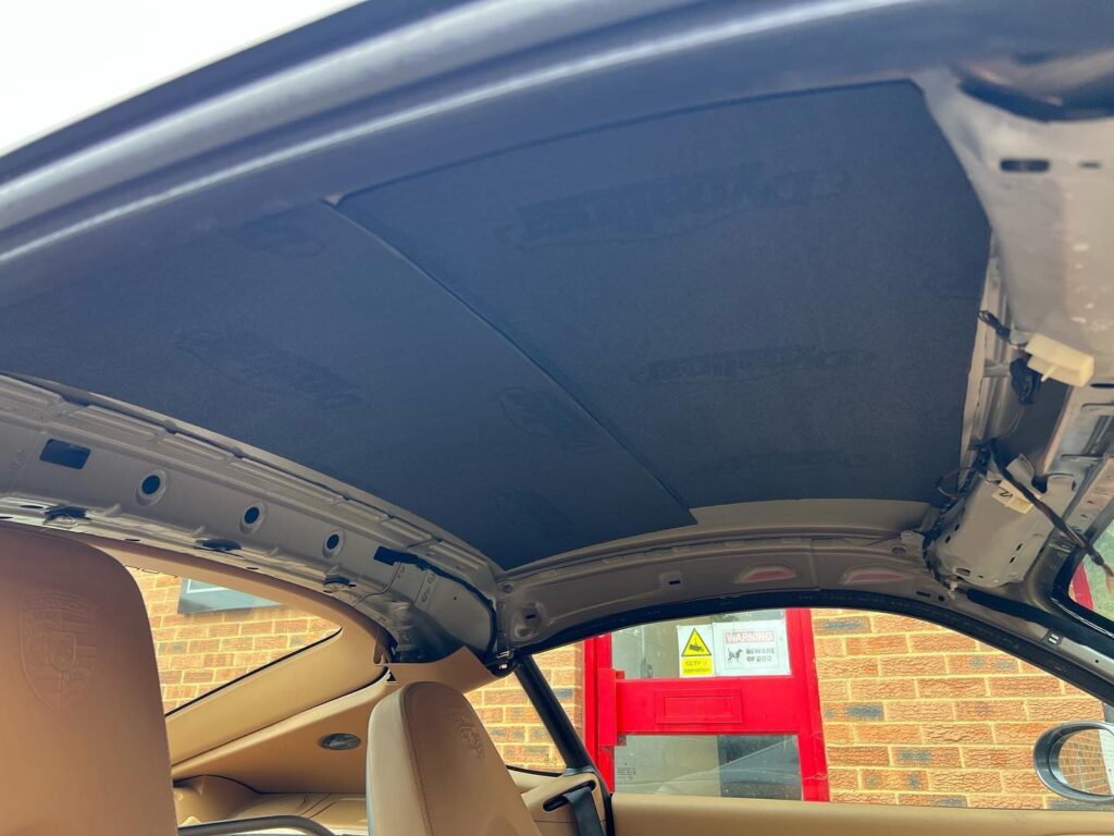 - Reinstallation: The newly restored headliner is reinstalled back into the car, with all trim pieces and accessories refitted.