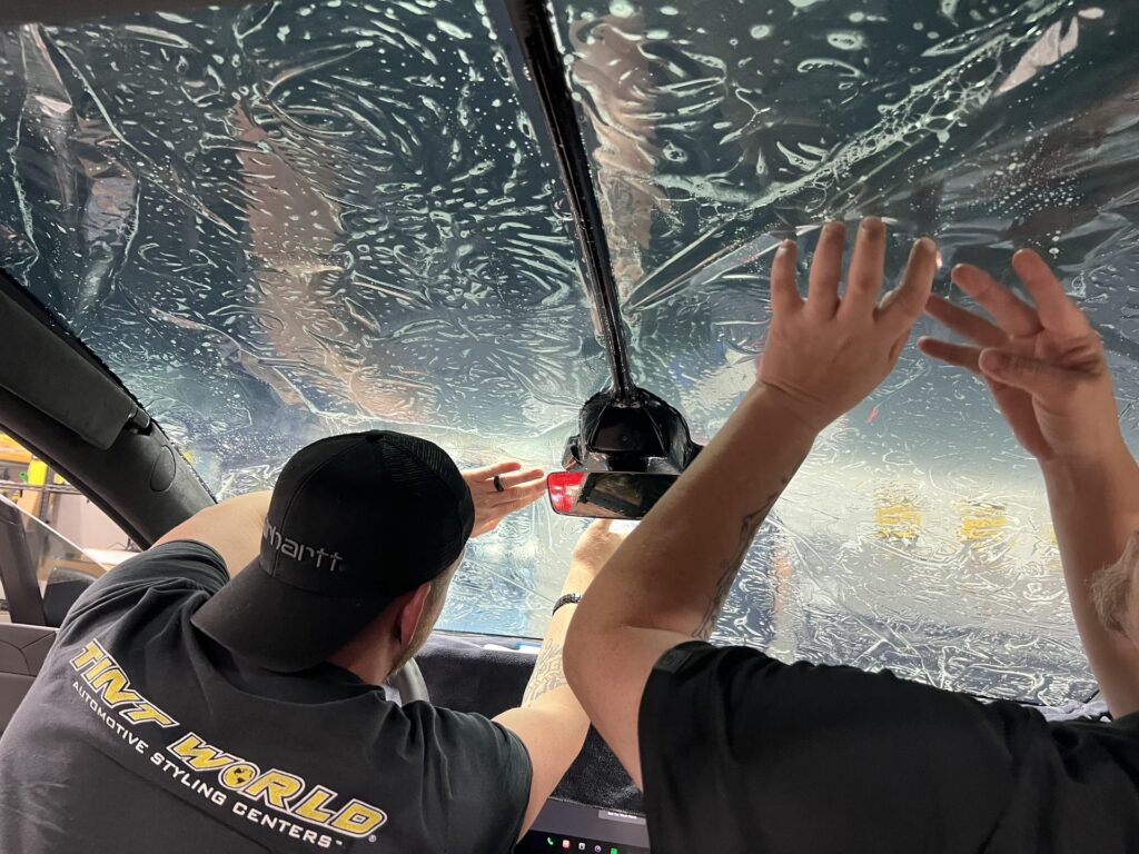 - Application: A slip solution is sprayed onto the window, and the film is carefully applied to the interior surface.