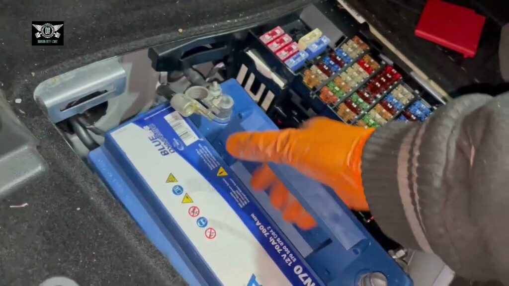 - Install the New Battery: Carefully lower the new battery into the tray, ensuring it sits securely and is oriented correctly (positive and negative terminals matching the cables).