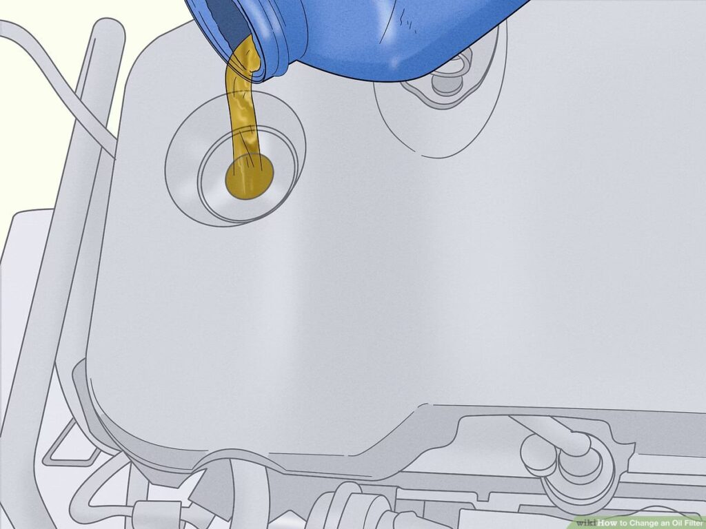 - Add new oil: Remove the oil filler cap and use a funnel to add the correct amount of new engine oil.
