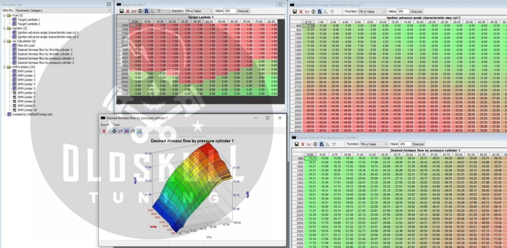 ECU tuning is available through calibration files (xdf) that allow modification of fuel maps, spark advance, throttle response, and rev limiters for compatible Bosch ME17.9.71 ECUs.