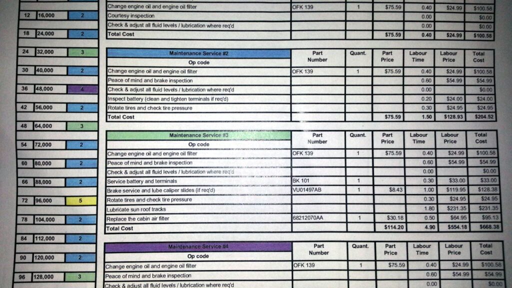 | Mileage or Years Passed | 20,000/2 | 30,000/3 | 40,000/4 | 50,000/5 | 60,000/6 | 70,000/7 | 80,000/8 | 90,000/9 | 100,000/10 | 110,000/11 | 120,000/12 | 130,000/13 | 140,000/14 | 150,000/15 |