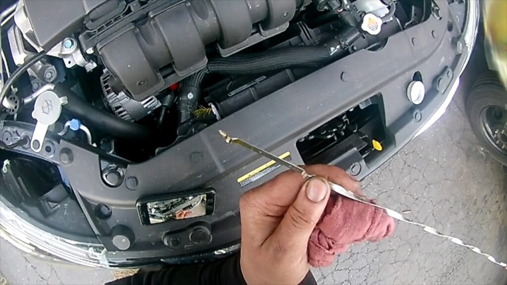 Remove the dipstick, wipe it clean with a rag, reinsert it fully, and then pull it out again. Check the oil level against the markings on the dipstick. It should be between the 'Min' and 'Max' (or 'Add' and 'Full') marks. If it's low, add a small amount of oil and recheck. If you've overfilled it, you may need to drain some oil out.