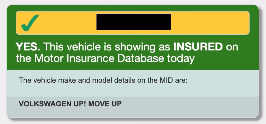 - View Results: The website will then display whether your vehicle is currently recorded as insured on the MID. It will show the make and model of the car and confirm if it's insured.