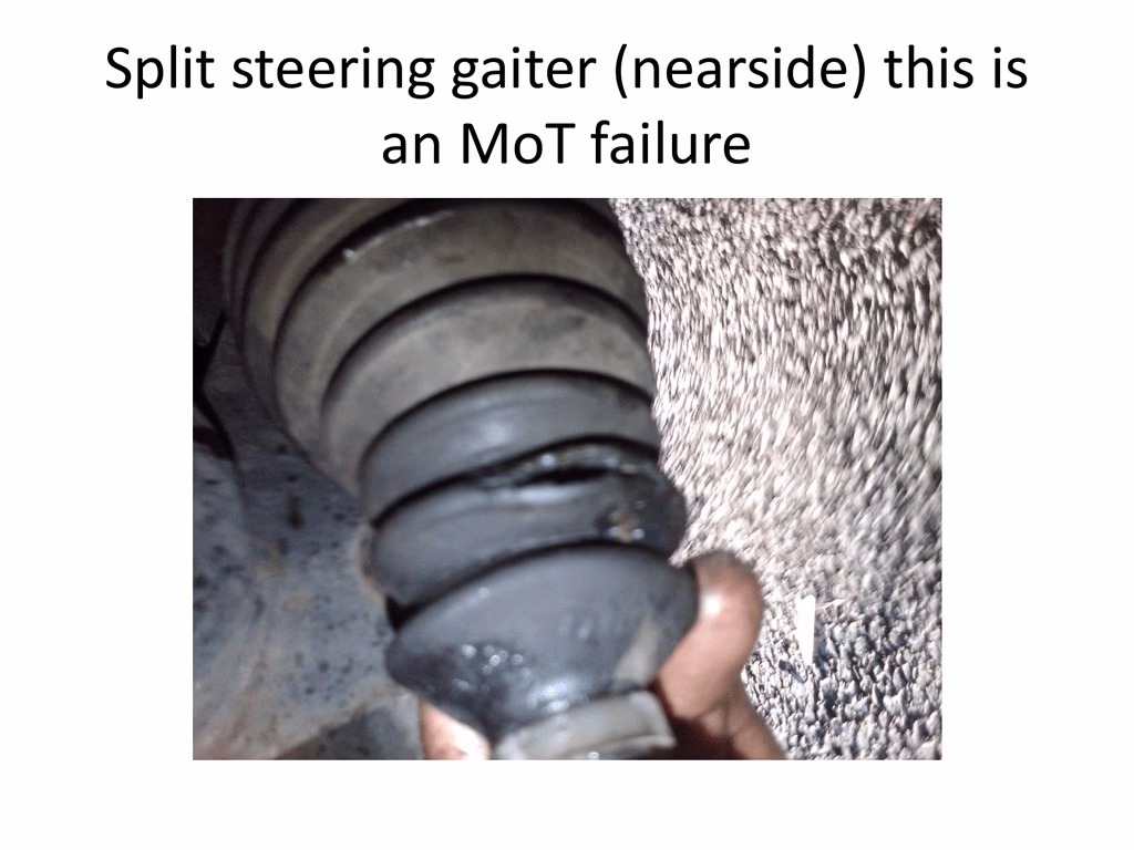 • Gaiter Inspection: The steering rack has rubber covers called gaiters on each end. These protect the internal components from dirt and moisture. Check these gaiters thoroughly for cracks, tears, or signs of leakage. A holed gaiter can quickly lead to rack failure. You can often temporarily repair a holed gaiter with a plastic bag and tape, but this is only a temporary fix.
