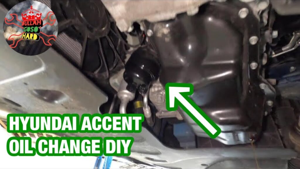 Oil & Filter Change 2013 Hyundai Accent GLS 1.6L 4 Cyl. Oil & Filter Change 2013 Hyundai Accent GLS 1.6L 4 Cyl. 1. Getting Started - Prepare for the repair 2. Open the Hood - How to pop the hood and prop it open 3. Find Oil Drain - Locate the oil drain plug underneath the vehicle 4. Drain Oil - Set up the workspace, drain oil and replace plug 5.