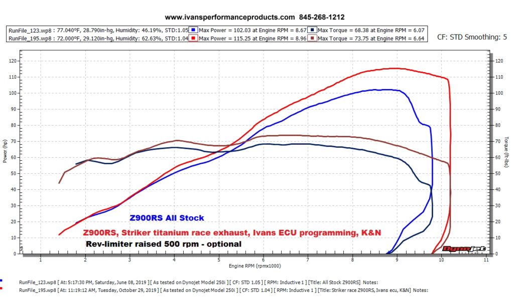 - Performance Gains: This is often the primary motivation. By optimising fuel and ignition maps, particularly when combined with aftermarket exhausts or air filters, significant increases in horsepower and torque can be achieved. The Z900 RS can feel more responsive and powerful throughout its rev range.