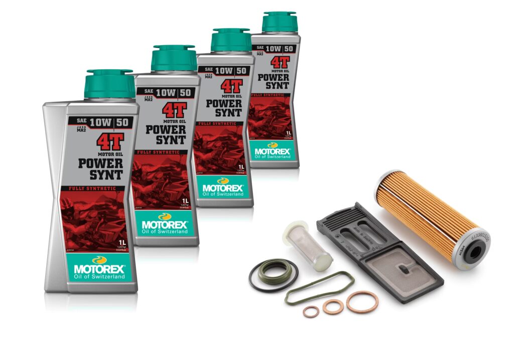 While KTM officially recommends Motorex 10W-50 fully synthetic oil, many owners use other high-quality synthetic oils that meet or exceed the required specifications (e.g., API SN, JASO MA2). However, it's crucial to ensure the chosen oil's absolute viscosity and additive package are suitable for these sensitive engines, especially regarding hydraulic cam tensioners. Consulting with a KTM specialist or thoroughly researching oil specifications is advised before switching.
