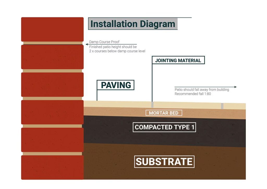 - Sub-base Thickness: This is a critical component. A standard recommendation for a domestic patio is a minimum of 100mm of compacted sub-base.
