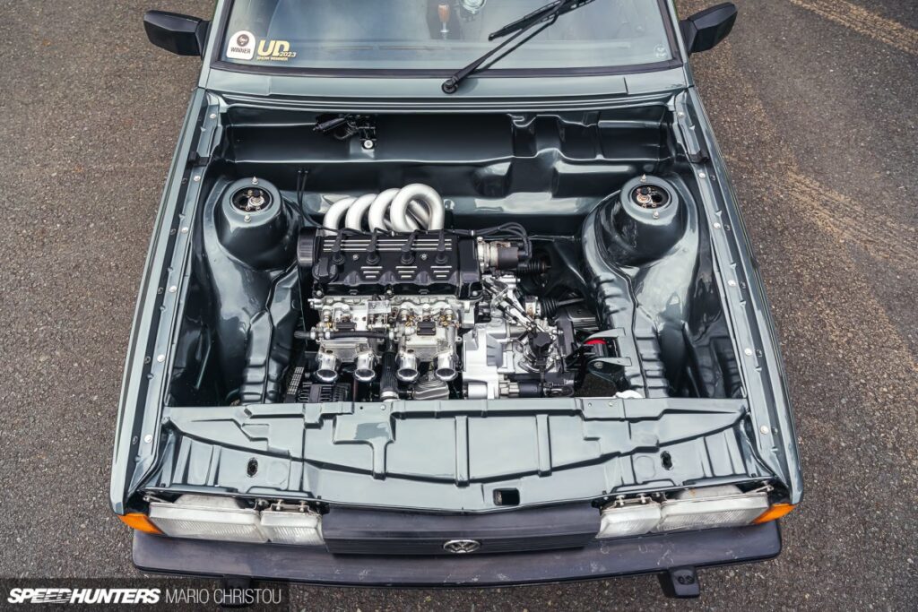 With the engine bay meticulously prepared, the next step was the temporary installation of a 1.8T 20v turbo engine, sourced from an Audi A3. This AGU motor boasts a custom cold air intake, complete with a CNC-machined holder for the MAF sensor, and a bespoke 2.5-inch downpipe seamlessly integrated with a matching 2.5-inch exhaust system featuring a Fox backbox. Before the engine was permanently fitted, Dennis and his team ensured its flawless operation within the car. The entire setup was then removed once more, and the car was dispatched to Makro Cars in Hamm, Germany, for a professional respray. This strategic approach, painting the car after the engine bay modifications were complete, proved far more efficient than attempting extensive paintwork with the engine installed.