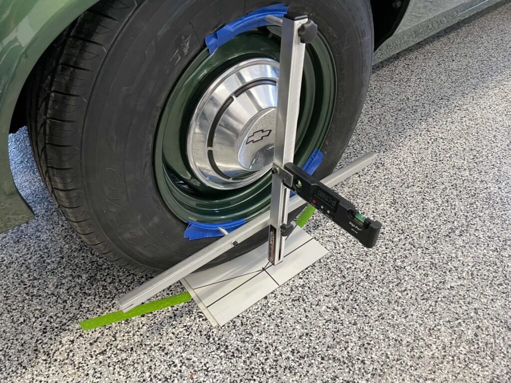 6. Check Ride Height: Measure the front ride height. Many enthusiasts check alignment at static ride height and also at a simulated 'accelerated' ride height (e.g., 1.5 inches higher) to understand how the alignment changes under load.