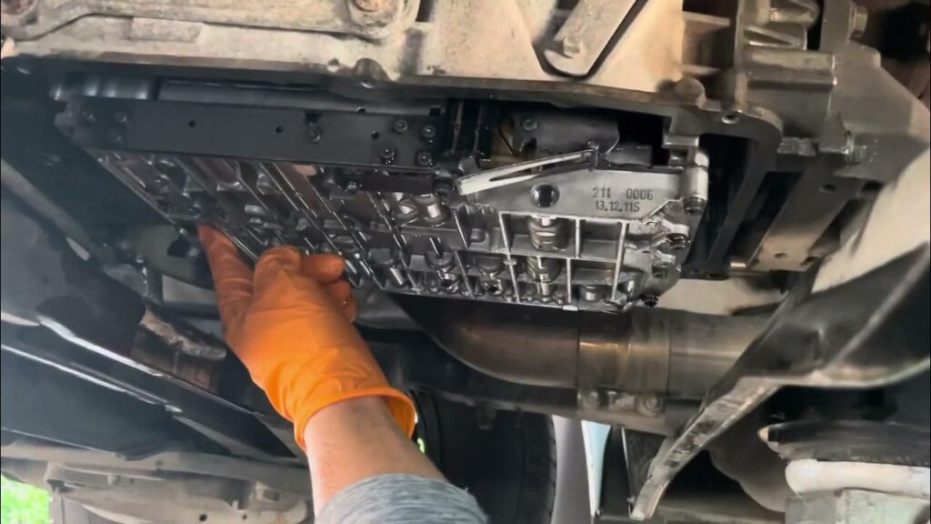 2. Remove the Transmission Pan and Filter: Once the fluid has drained, remove all the one-time use pan bolts. Carefully lower the transmission pan, as there might still be some residual fluid inside. Remove the old transmission filter.