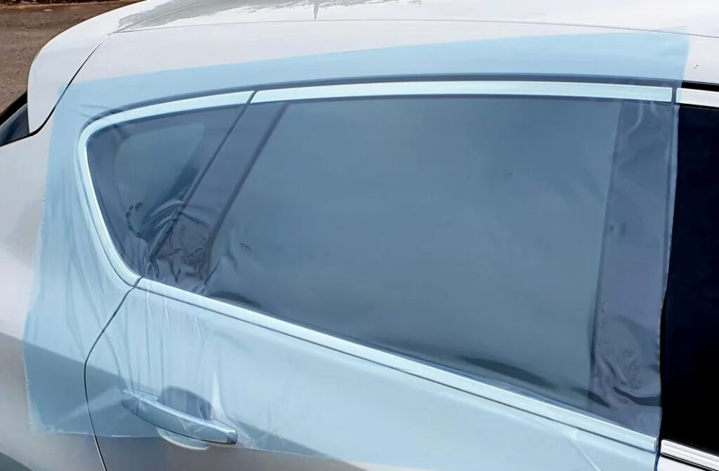 - Secure the Patch: Position the plastic sheeting over the window opening. Press the taped edges firmly against the car's bodywork, working from the centre outwards to eliminate air bubbles and ensure a strong seal. Pay particular attention to the corners and edges.