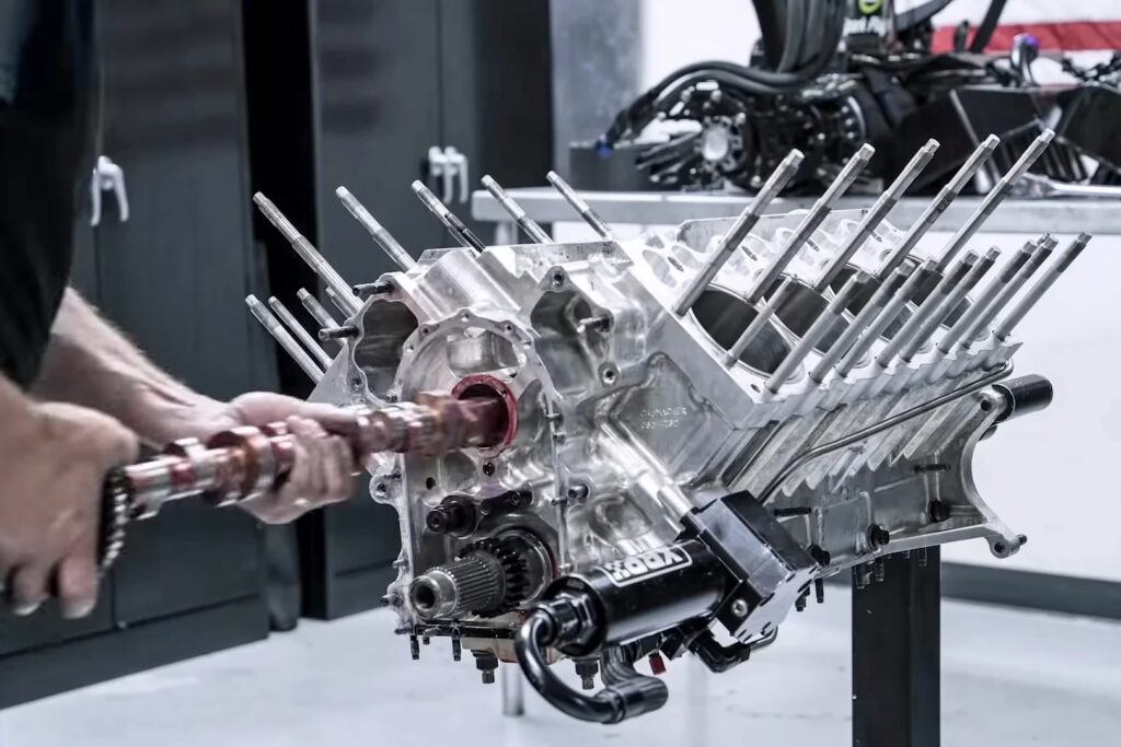 Internally, the crankshaft and camshaft are forged from billet steel, designed to withstand immense stresses. A key design element, noted during teardowns, is the use of oversized studs rather than long bolts for critical components. This is a practical consideration for the rapid rebuilds required between rounds. When an engine is hot, studs minimise thread damage during multiple disassemblies, a crucial advantage when time is of the essence.