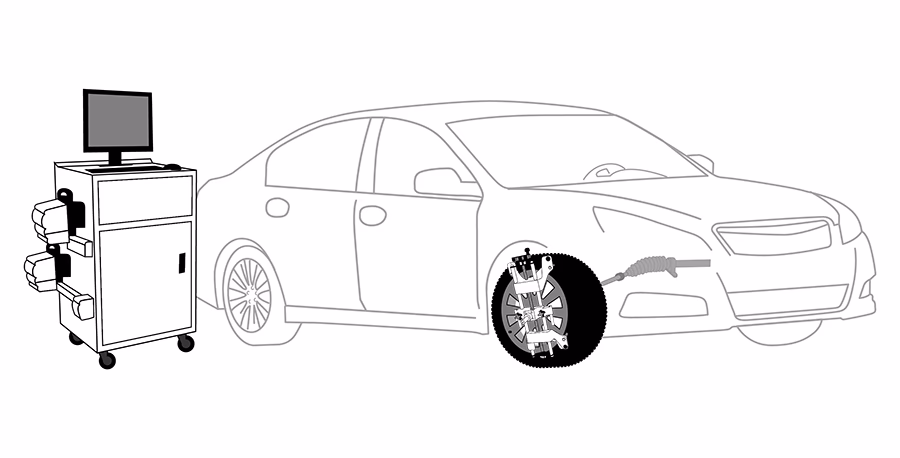 3. Wheel Clamp Installation: Special clamps are attached to each wheel. These clamps have targets that the alignment machine's cameras can track.