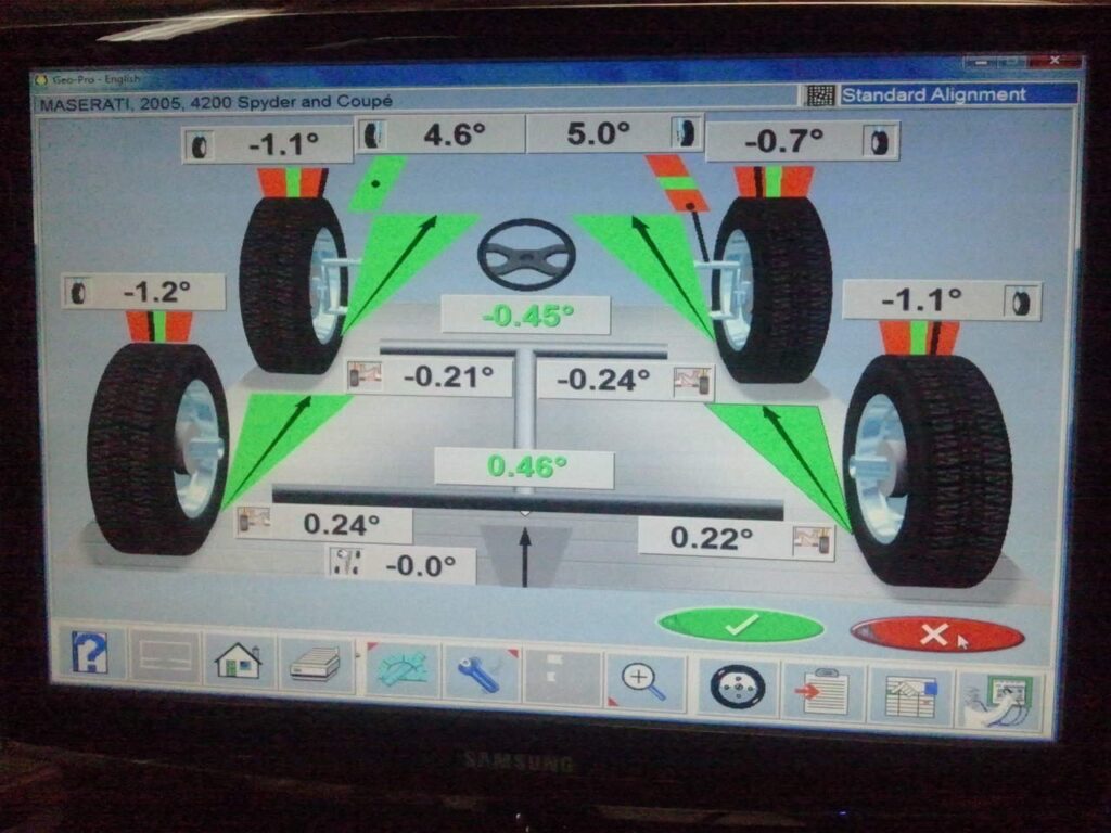 - Adjustment Process: The technician will adjust the various bolts and components to bring the camber, toe, and caster angles within the manufacturer's specifications. For Maserati, achieving perfectly even camber and toe from left to right is paramount. A difference of more than 0.1 degrees between sides for camber can significantly impact handling.