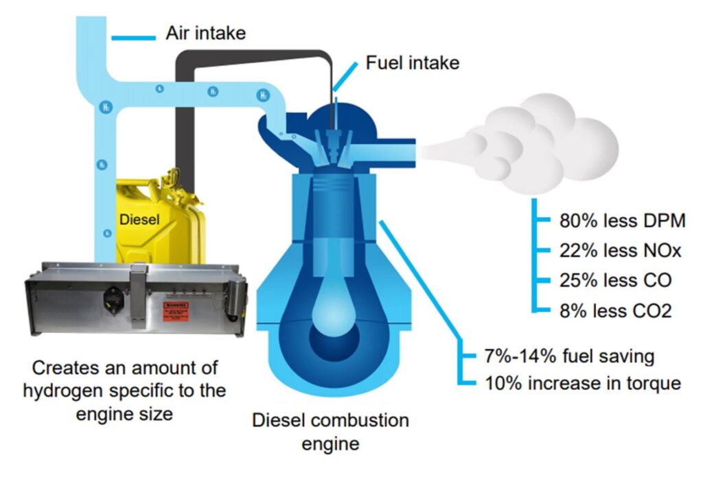 While distinct from fuel cell technology, the concept of hydrogen injection in diesel engines highlights another application of hydrogen in internal combustion engines. In these systems, hydrogen, often produced on-demand from deionised water, is introduced into the diesel engine's combustion process. This hydrogen enrichment can lead to lower emissions, increased power output, and reduced fuel consumption. Sophisticated electronics manage the hydrogen flow responsively to engine demand, optimising performance. Independent testing has indicated that hydrogen addition can significantly reduce harmful emissions, by up to 80%, and decrease fuel consumption by up to 14%. Such systems operate only when the engine is running, using only deionised water as the source for hydrogen generation.